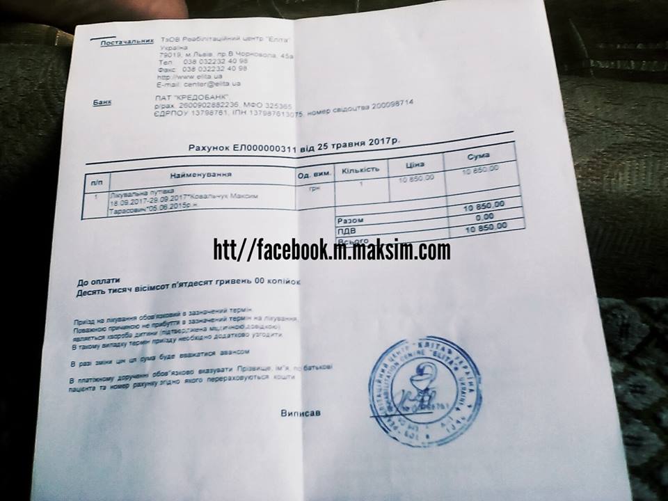 “Нам потрібно п’ять реабілітацій на рік. Лікування в Трускавці дуже дорого коштує і нашій молодій сім’ї самостійно з цим справитися не під силу . Ми звертаємося до всіх небайдужих людей! Дайте Максимчику шанс на повноцінне життя! Дитинство проходить , його не повернеш, так хочеться, щоб син став на ножки, зробив свої перші кроки. Будем раді будь якій допомозі“, – звертається Світлана Ковальчук до небайдужих люлей.