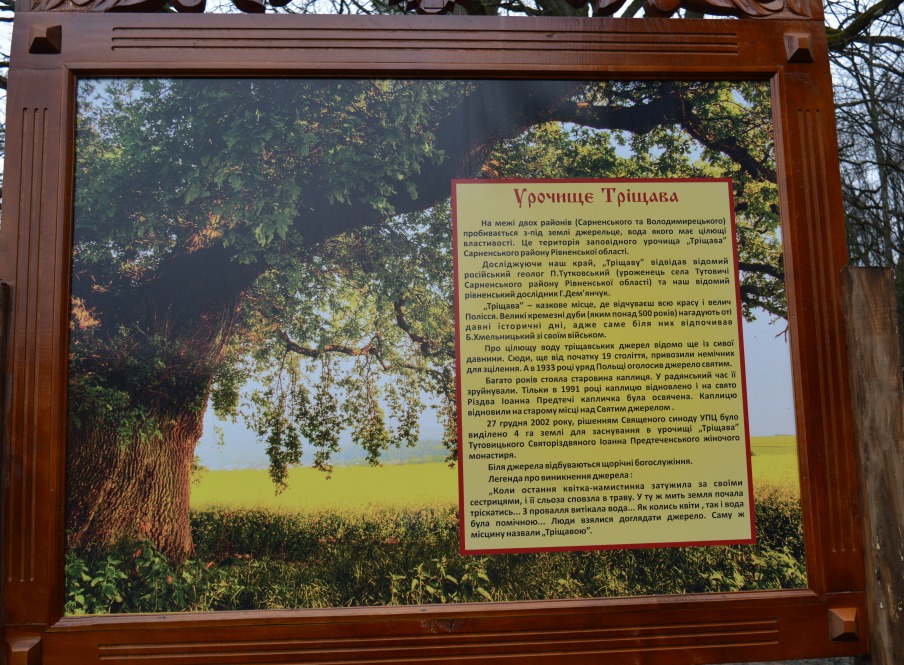 731Урочище Тріщава, відоме своїм цілющим джерелом, розташоване в прекрасному куточку Полісся. Дорога до нього веде лісом, який зберігає в собі пам’ять про історичні події, що відбулися на Сарненщині в різні роки. Були вони і сумні, і героїчні. Якби ліс і вода могли розповісти всі свої таємниці, можливо, й люди в більшості по-іншому ставилися б до природи, не нищили б її, а оберігали, примножували багатства, якими так багате наше Полісся.