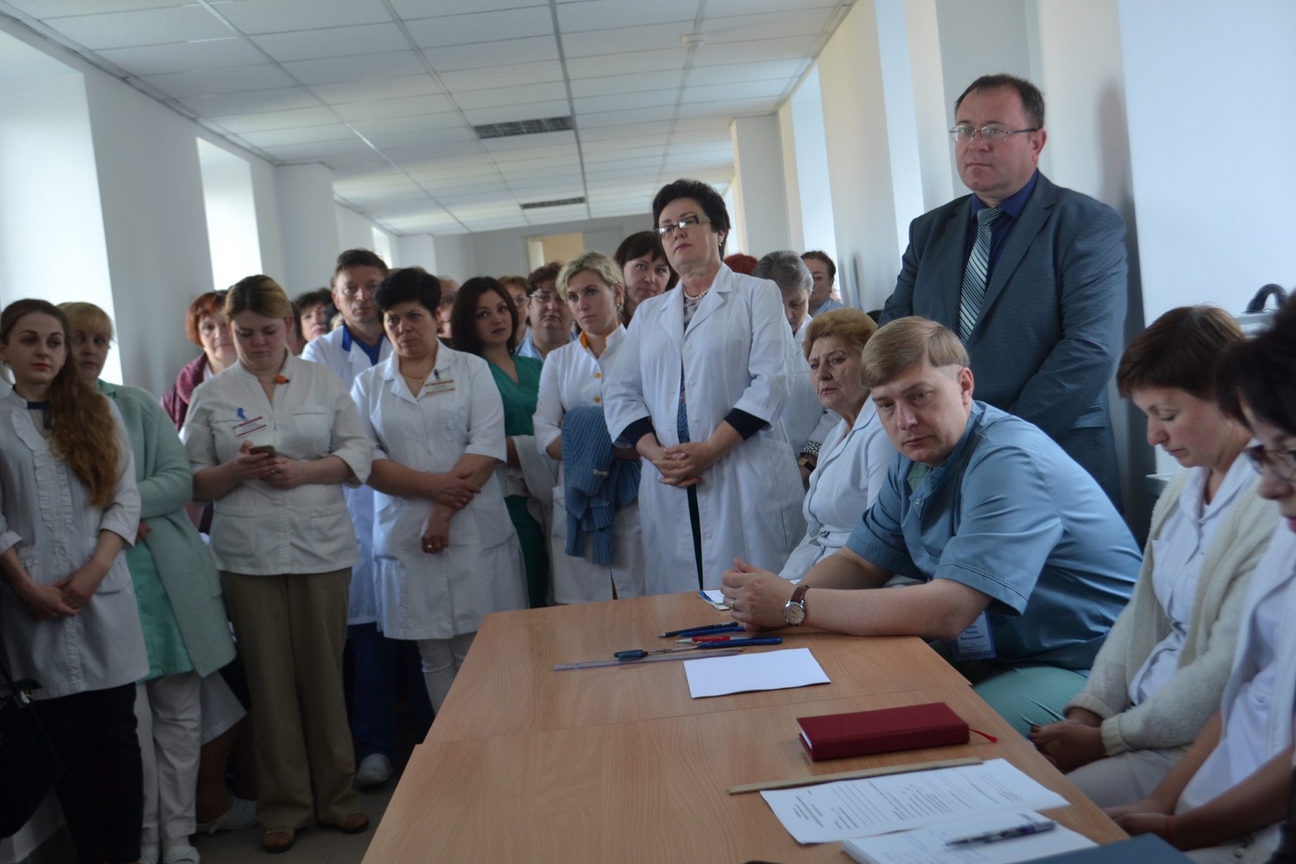 В Рівненському обласному онкологічному диспансері за участі голови облради Миколи Драганчука та керівника фракції ВО «Батьківщина» в облраді Миколи Кучерука відбулися збори колективу, на яких працівники закладу голосували, кого хочуть бачити головним лікарем. Перед початком голосування Микола Драганчук відмітив, що збори повинні пройти чесно та демократично. Та додав, що рішення медперсоналу хоч і рекомендаційне, але дуже важливе для депутатів.DSC_0215