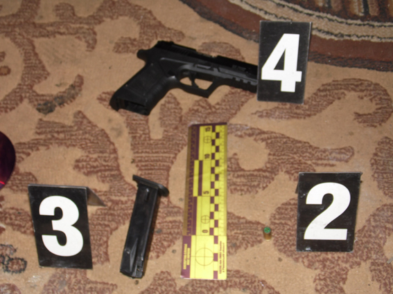 На трьох поліцейських, які прибули до будинку, молодик, відчинивши двері, направив пістолети. Правоохоронці швидко зачинили їх та не давали чоловікові вийти. Однак через деякий час з вікна двічі пролунали постріли в бік поліцейських. Під час інциденту ніхто не постраждав. Зловмисник мав при собі стартовий пістолет марки «Ekol Alp», що споряджається холостими патронами калібру 9 мм.