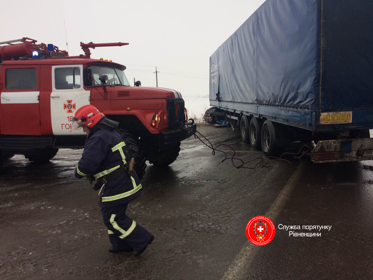 03 лютого о 08:45 до Служби порятунку Рівненщини надійшло повідомлення про дорожньо-транспортну пригоду за участі 7 автомобілів (в тому числі 5 вантажівок) на трасі Київ-Чоп поблизу села Терентіїв.