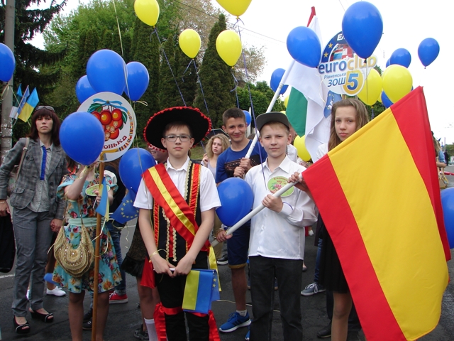 Учні рівненських шкіл були одягнені у національні костюми країн-учасниць Європейської спільноти.