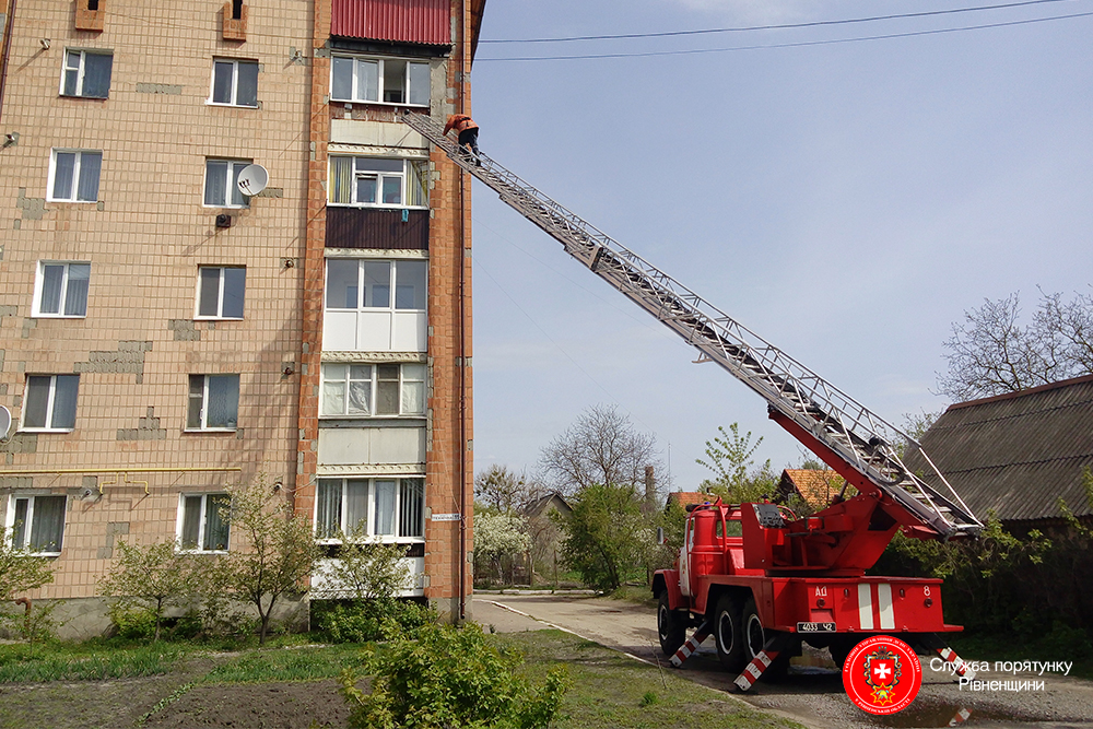 03 травня о 10:44 на пункт зв’язку 8-ї державної пожежно-рятувальної частини Головного управління ДСНС України у Рівненській області зателефонували громадяни та повідомили про те що на балконі 5-го поверху багатоквартирного житлового будинку перебуває літня жінка, яка не може потрапити до квартири, в середині якої перебуває її дворічний онук.