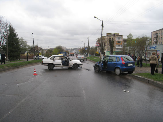 Шостого квітня в обідню пору на вулиці Грушевського райцентру сталася дорожньо-транспортна пригода, внаслідок якої постраждали троє пасажирів і водій.