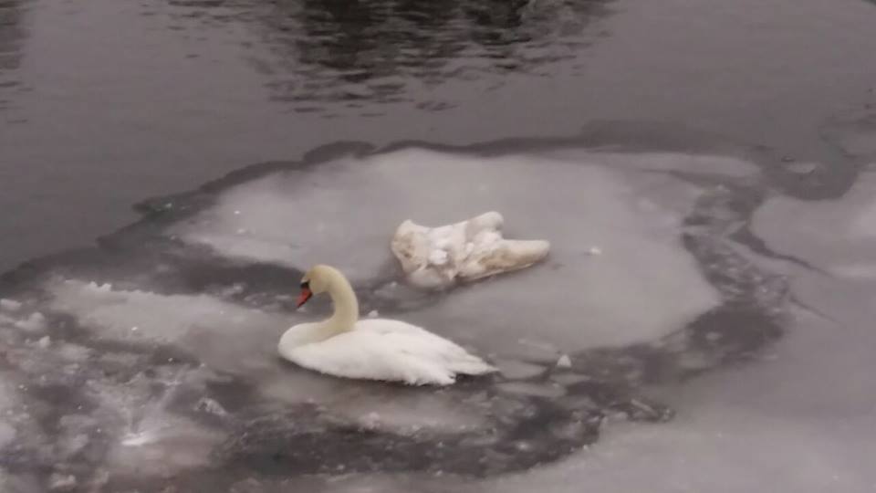 Великий Олексин міст через р.Устя що веде в Хотин замерзають лебеді . Звонили в МЧС говорять це не до них . Можливо хто знає кому повідомити щоб допомогли.