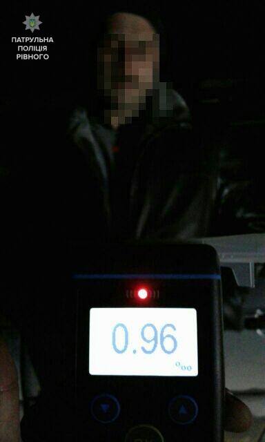 Коли патрульні зупинили водія, щоб поспілкуватись, вони виявили у нього явні ознаки алкогольного сп’яніння, що і підтвердив тест на місці – 0, 96 проміле, що стало причиною складання протоколу за ч.1 ст.130 КУпАП (керування в стані сп’яніння). За відсутню підствітку номеру на 44-річного водія винесли постанову за ст.121 КУпАП.