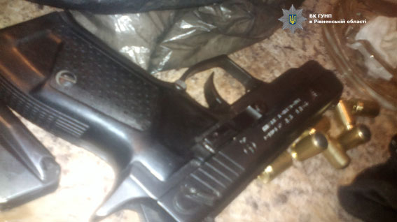 «Під час огляду помешкання поліцейські виявили пістолет для відстрілу гумових куль марки “Форт-12”, 16 патронів з ознаками видозмінення, посвідчення на зброю з елементами підробки, пакет з псевдоефедрином (прекурсор для виготовлення метамфетаміну) масою 900 грамів та знаряддя для вживання наркотиків, — повідомив т.в.о. начальника управління протидії наркозлочинності ГУНП в Рівненській області Олександр Нагорнюк. — Усе вилучене направили на експертизу до Рівненського науково-дослідного експертно-криміналістичного центру МВС.»