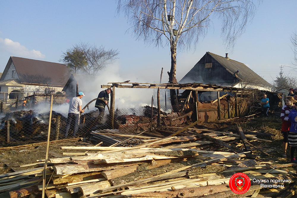 03 квітня о 15:48 до Служби порятунку Рівненщини за номером «101» надійшло повідомлення про пожежу в дерев’яній господарчій будівлі 17х6м, приватного господарства у селі Довге Сарненського району по вулиці Центральній. На місце виклику негайно було направлено вогнеборців місцевої пожежної команди с. Тутовичі та чергове відділення бійців 8-ї державної пожежно-рятувальної частини міста Сарни на двох пожежних автоцистернах.