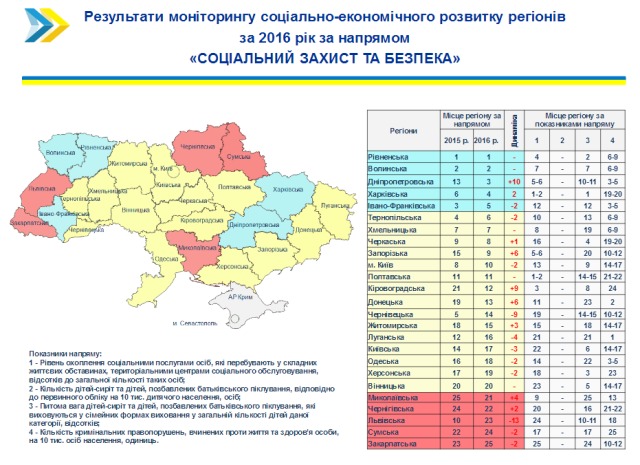 Рівненська область очолила рейтинг регіонів щодо рівня соціального забезпечення громадян у 2016 році