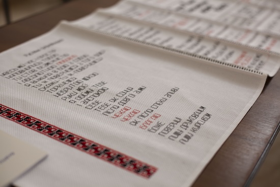 Поєднання художнього слова та імен на рушнику не випадкове. Рівне недаремно називають столицею «вишиваного слова». Саме тут живе й творить відома письменниця та майстриня Олена Медведєва — єдина у світі людина, яка створює вишиті книжки. Саме її авторським шрифтом було виконано імена та тексти на рушнику. Хоча відтворити його вдалося не всім, головне — що кожне ім’я було вишито з любов’ю і щирими думками про повернення найдорожчих.