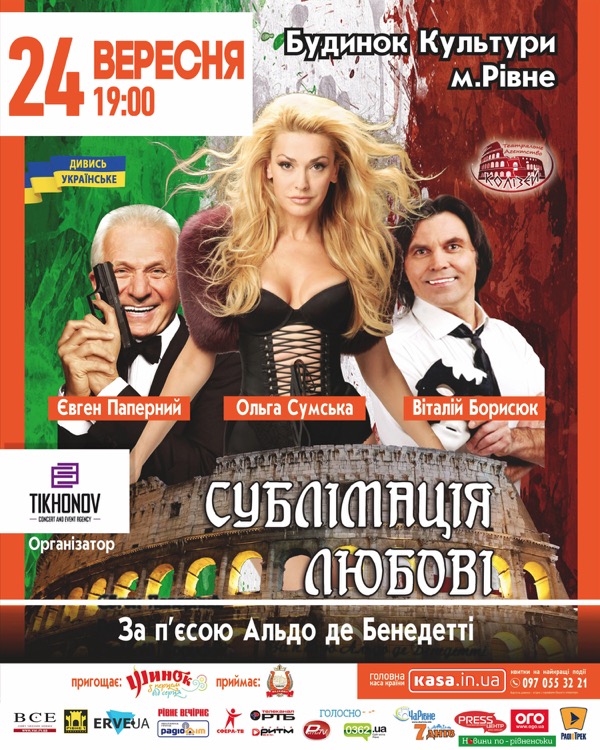 24 вересня о 19:00 на сцені Міського Будинку Культури відбудеться надзвичайна комедія на 2 дії за п’єсою італійського драматурга Альдо де Бенедетті – «Сублімація любові»!
