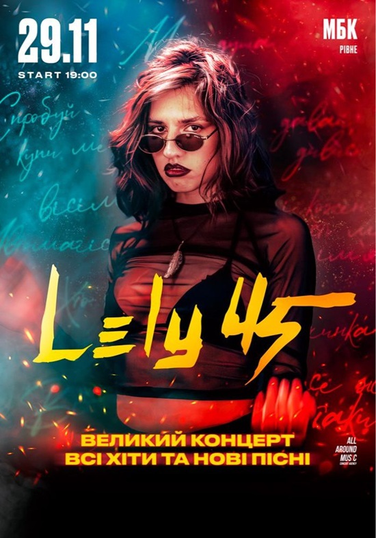 29 листопада о 19.00 у Міському будинку культури не пропустіть великий сольний концерт LELY45 у Рівному!