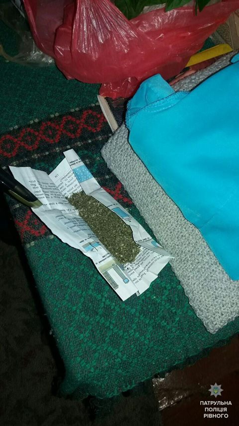 36-річний син під час спілкування з охоронцями правопорядку помітно нервував, підозріло себе поводив та намагався уникнути розмови. У інспекторів виникла підозра про те, що він має при собі речі, обіг яких заборонено. Провівши поверхневу перевірку патрульні виявили у нього паперовий згорток з подрібненою речовиною рослинного походження, ззовні схожою на наркотичний засіб.