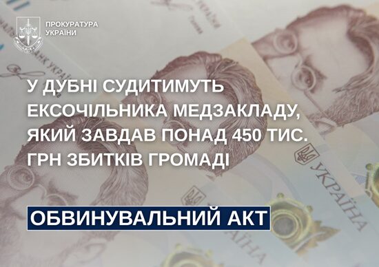 У Дубні судитимуть ексочільника медзакладу, який завдав понад 450 тис. грн збитків громаді