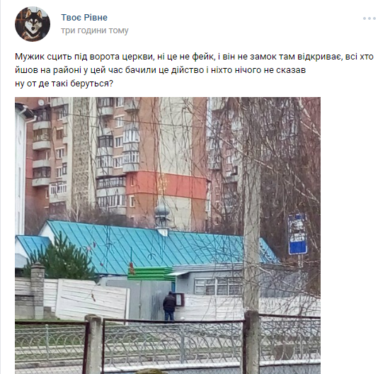 У Рівному чоловік справляв малу потребу під воротами церкви (фотофакт)