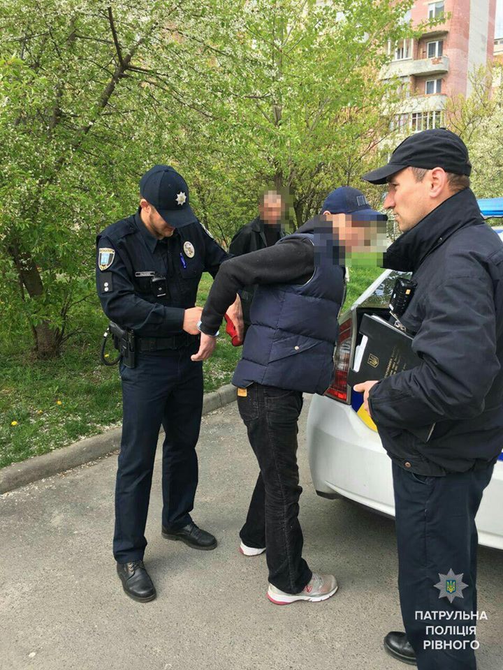 У сумці 47-річного рівнянина патрульні помітили предмет, зовні схожий на зброю. Полісмени забезпечували охорону місця події та можливого знаряддя скоєння злочину до приїзду слідчо-оперативної групи. Освідувавши затриманих на стан алкогольного сп’яніння у медичному закладі, патрульні доставили рівнян у відділ поліції для з’ясування усіх обставин справи.