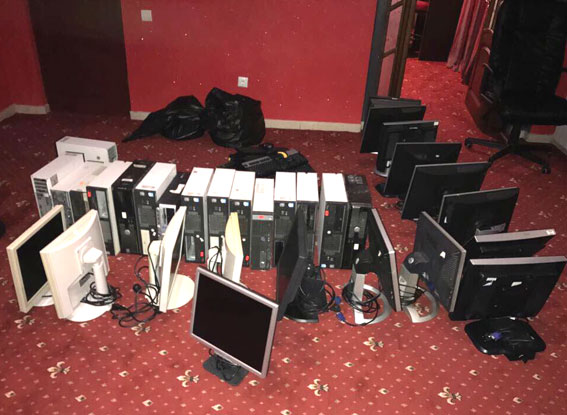 Під час обшуків поліцейські виявили та вилучили 158 одиниць комп’ютерної техніки, зокрема 80 системних блоків, 78 моніторів та гроші на загальну суму дві тисячі 867 гривень.