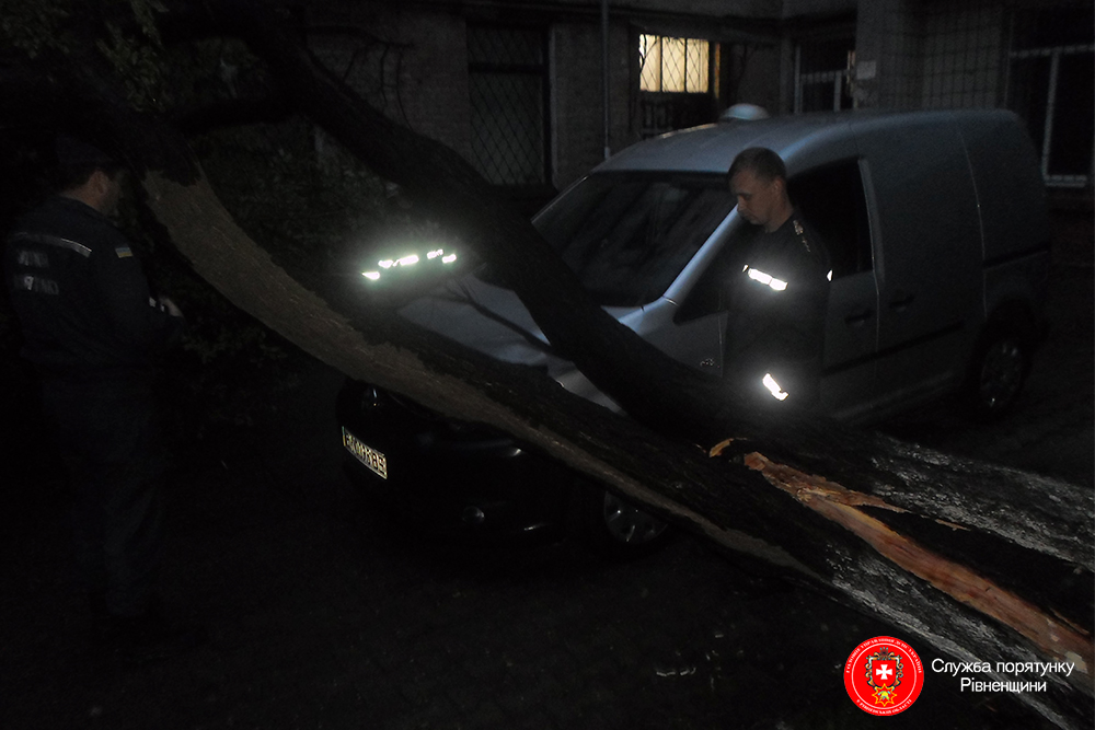 25 травня об 21:12 за номером «101» надійшло повідомлення, що в місті Рівне по вулиці Князя Острозького, 4 внаслідок негоди впало дерево на автомобіль марки “Volkswagen Caddy” та перекрило проїзд до житлового п’яти поверхового будинку. В машині на момент пригоди людей не було. На місце виклику негайно було направлено чергове відділення пожежно-рятувальної частини аварійно-рятувального загону спеціального призначення та оперативно координаційний центр Головного управління ДСНС області. По прибуттю на місце пригоди рятувальники за допомогою бензопили швидко звільнили автомобіль та проїзджу частину. Внаслідок падіння дерева ніхто з громадян не постраждав.