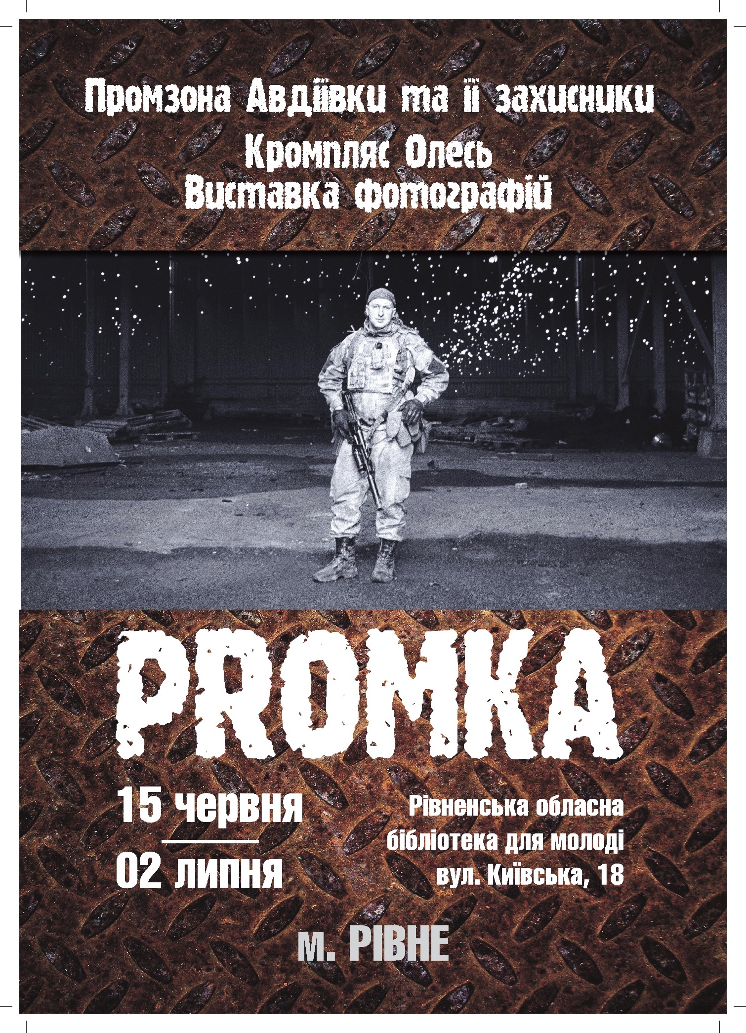 У Рівненській обласній бібліотеці для молоді 16 червня о 11:00 відбудеться презентація фотопроекту журналіста Олеся Кромпляса «PROMKA», присвячений промзоні містечка Авдіївка на Донбасі, звідки щодня надходять жахливі новини про ближні бої, обстріли, атаки, кількість поранених та загиблих на україно-російській війні, яка триває вже четвертий рік.