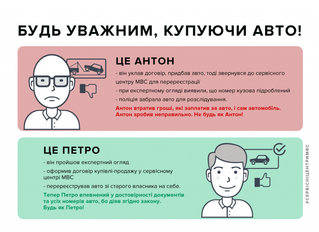 В Регіональному сервісному центрі вкотре закликають громадян бути обачними, відповідально ставитися до укладання договорів купівлі-продажу, ретельно перевіряти усі документи, технічний стан, а також звертатись за консультацією до територіальних сервісних центрів МВС.