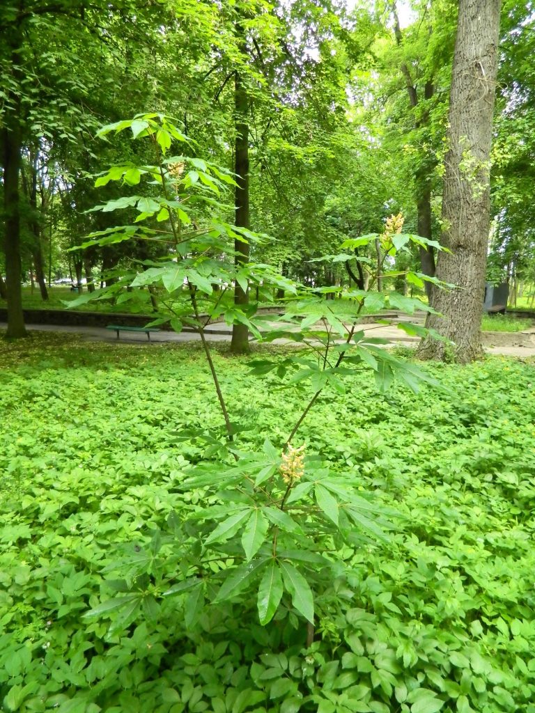 Під великим деревом гіркокаштана жовтого Ви не знайдете жодного каштана, оскільки всіх їх підібрали білки, адже полюбляють ними живитися зимою.