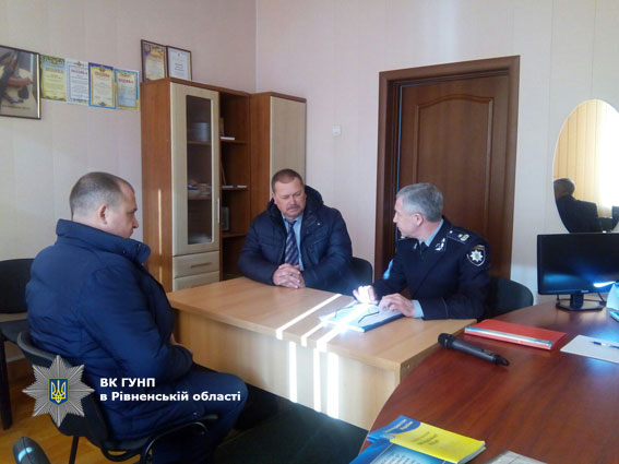 Поспілкуватися із керівником поліції краю прийшов і військовий комісар. Сергій Назвамов подякував за роботу та співпрацю начальнику Гощанського відділення поліції Анатолію Цідилку. Розповів, що систематично поліцейські та військові організовують у районі навчання для цивільного населення, спільні заходи розшуку і відпрацювання.