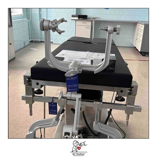 Це система черепної фіксації DORO QR3 – пристрій, який дозволяє надійно фіксувати голову пацієнта у стабільному положенні, що вкрай важливо під час таких оперативних втручань.