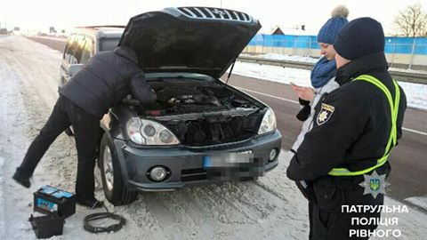 Під час патрулювання на автодорозі Київ-Чоп в с. Дорогобуж патрульні помітили сьогодні автомобіль HYUNDAI TERRACAN, який стояв біля пішохідного переходу. Як з’ясувалось – розрядився акумулятор і водій був в розпачі.