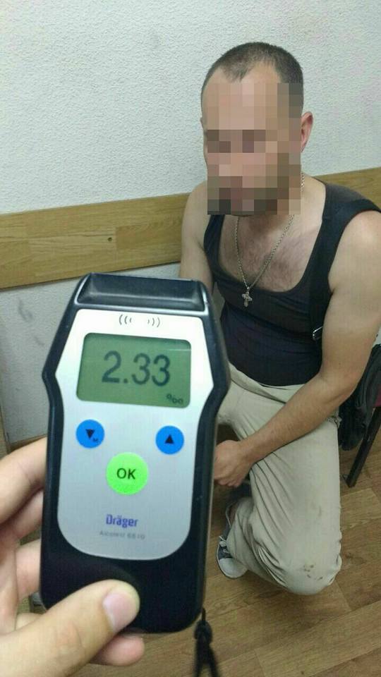 Огляд провели на місці зупинки транспортного засобу за допомогою газоаналізатора «Драгер». Проба виявилась позитивною – 2.31 проміле. Проте, водій не був згідний з результатом та виявив бажання пройти огляд в медичному закладі, куди згодом патрульні його і доставили. Висновок лікаря нарколога підтвердив перебування кермувальника в стані алкогольного сп’яніння.